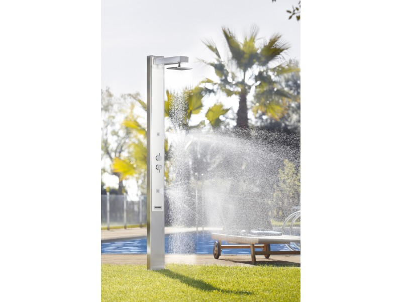 Disponibil în două modele de duș conventional sau duș solar, ideal pentru instalarea în grădini, terase sau zone private de piscină.