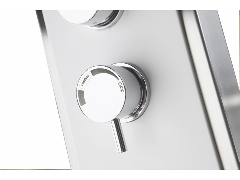 Incorporeaza un dus de alamă cromată pătrat, 2 jeturi care pulverizează efect nebulizator apa pe partea din față, ambele controlate de doua baterii cu dubla comanda, apă caldă și rece și cu tratare anticalcar.