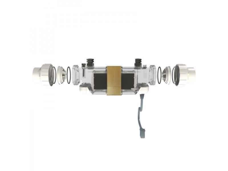 Produce clor prin electroliza apei sarate( concentratie necesara de sare in apa 2.5 - 5g/l). Detartrarea automata prin inversarea polaritatii. Productie de clor 48g/h. Capacitatea de tratare pana la 160 mc, in functie de modelul ales. Optimizeaza productia de clor in functie de temperatura apei. Celula cilindrica monobloc cu 7 placi din titan masiv tratate cu ruthenium. Se livreaza impreuna cu detector de debit, tester de sare , sonda pH , solutii de etalonare.